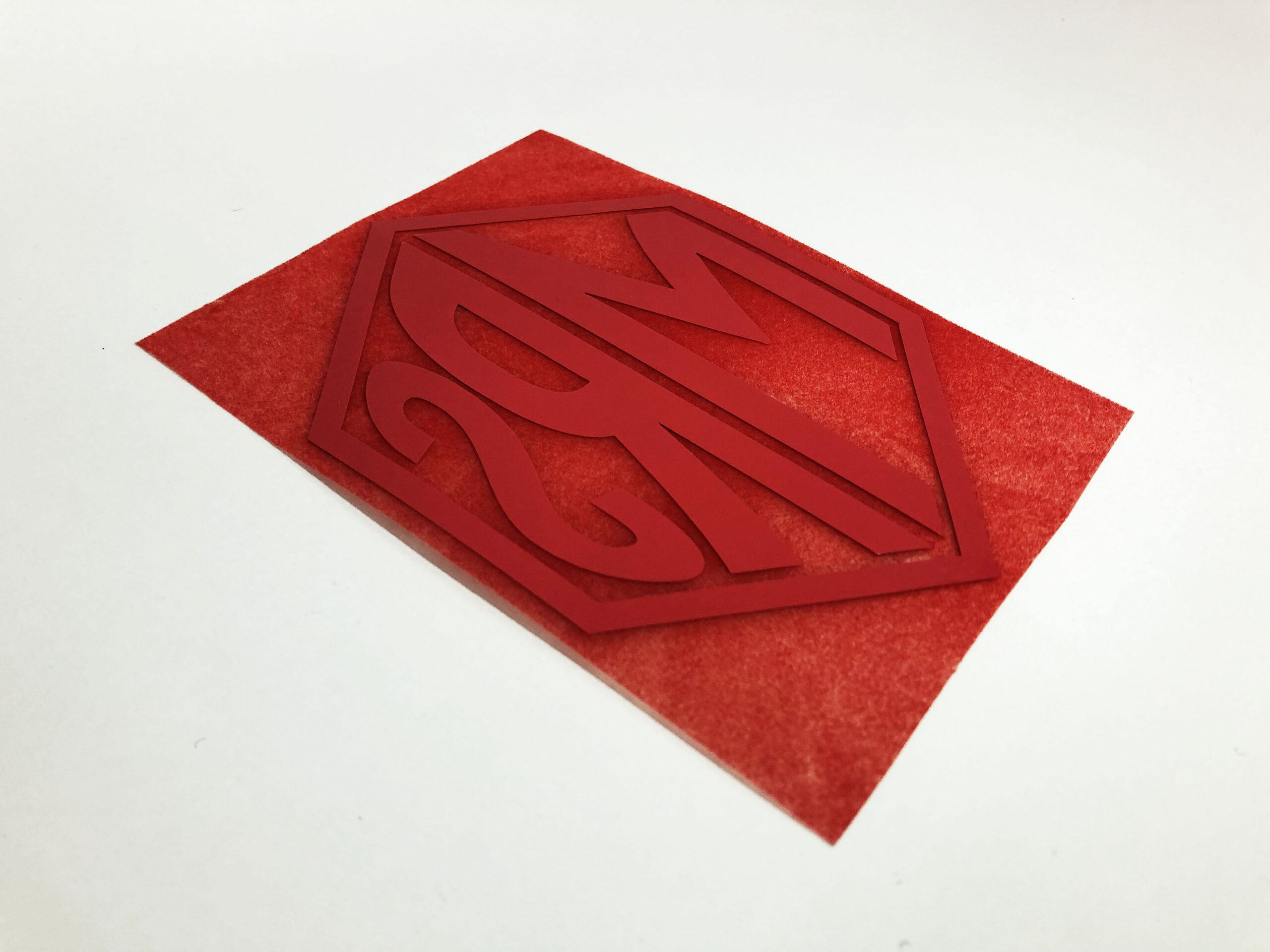 大井競馬場所属MY厩舎様のオリジナルロゴ『MRS』をロゴの形でカットし、メンコ用のワッペンを制作いたしました。重くなりがちな縫い付け式の刺繍ワッペンに比べ、軽量の熱圧着式ワッペンを取り付けることで、重みによるメンコのよれを軽減いたしました。