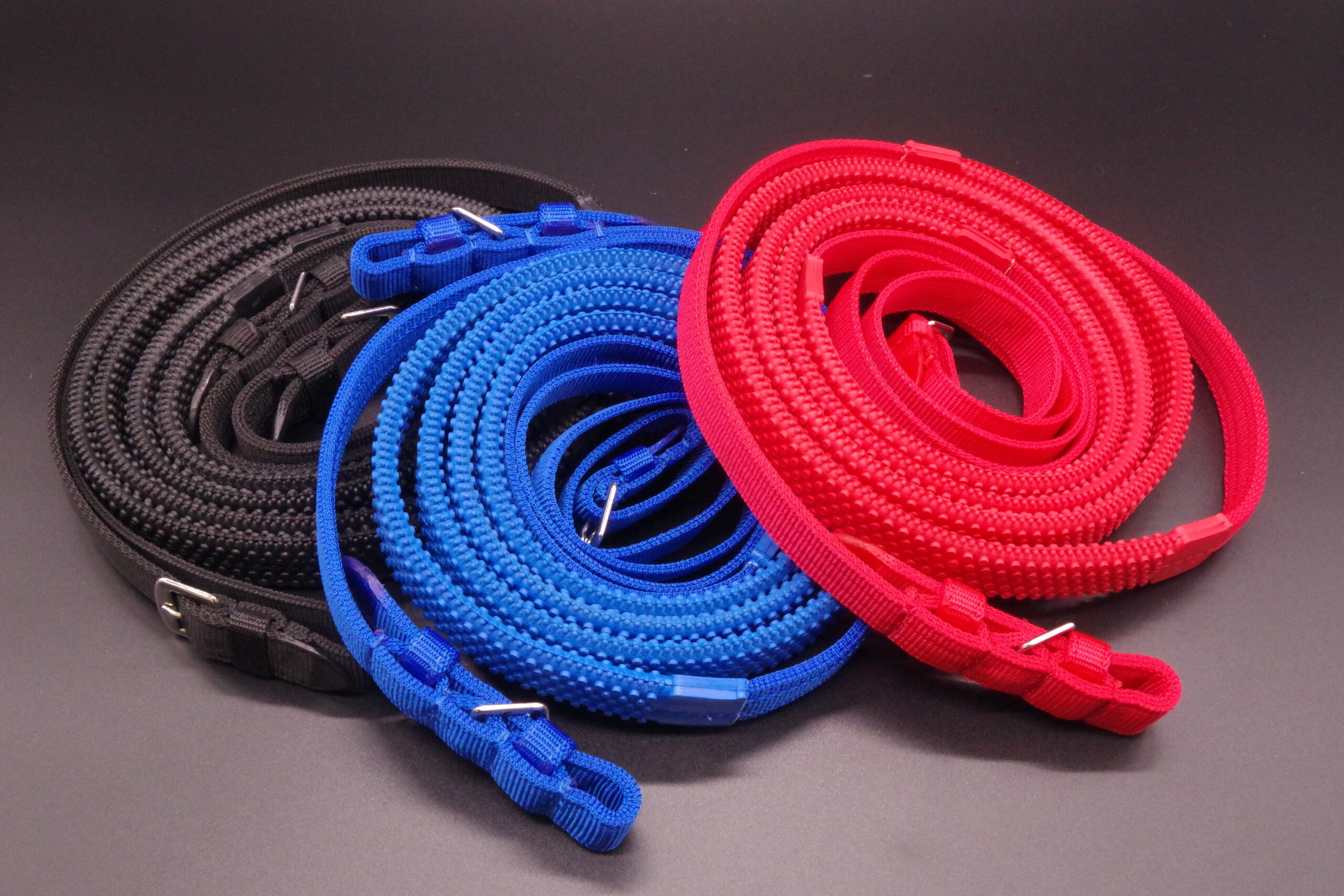 グリップ部分がゴム・ラバー仕様となっていますので、滑りにくく、柔らかく手に馴染み大変握りやすいゴム手綱です。